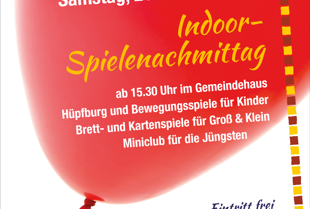 Es ist immer wieder schön, wie beim gemeinsamen Spielen Jung und Alt, bekannte und weniger bekannte Gesichter eine fröhliche Gemeinschaft erleben. In dem großen Angebot an Brett- und Kartenspielen findet jede(r) etwas Passendes und der Samstagnachmittag vergeht jedes Mal wie im Fluge. Für Kinder wird im Foyer eine Hüpfburg aufgebaut, aber auch bei Tischkicker und Tischtennis ist Bewegung angesagt. Für Krabbelkinder gibt es altersgemäßes Spielzeug im Miniclub. Allerdings müssen die Kinder eine Betreuungsperson dabei haben, denn die Kirche des Nazareners übernimmt am Spielenachmittag keine Aufsicht.